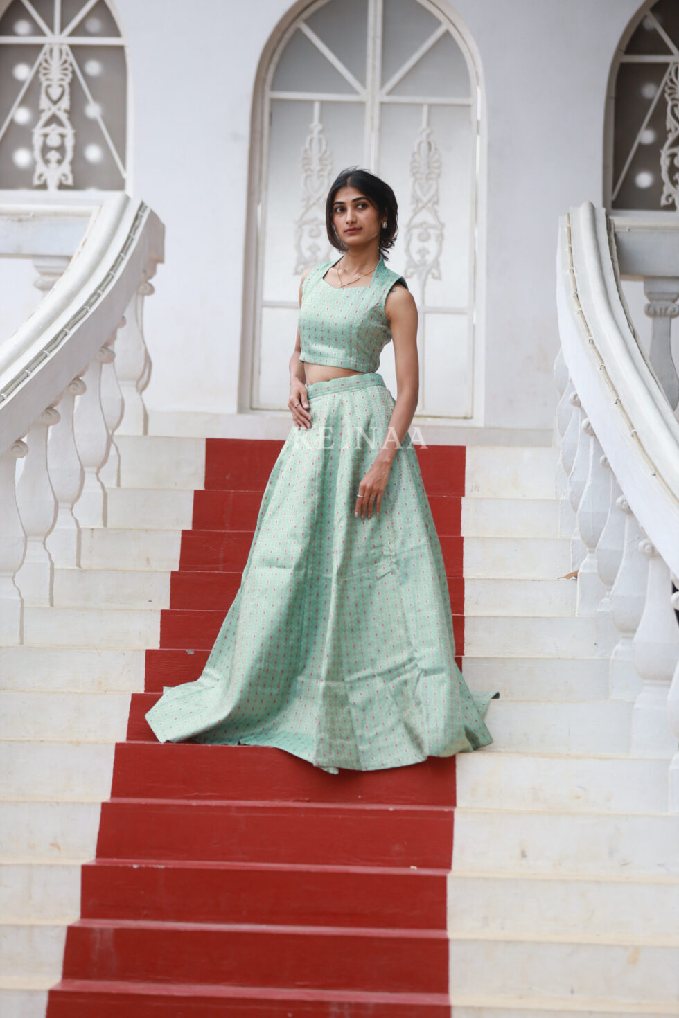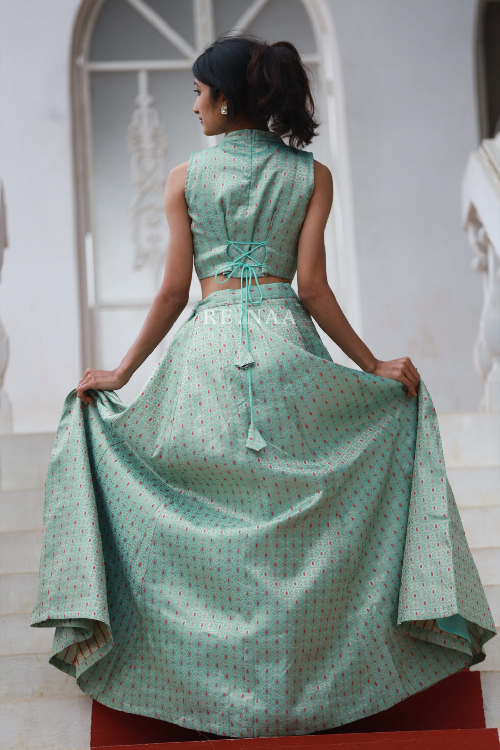Banarasi Green top and skirt
