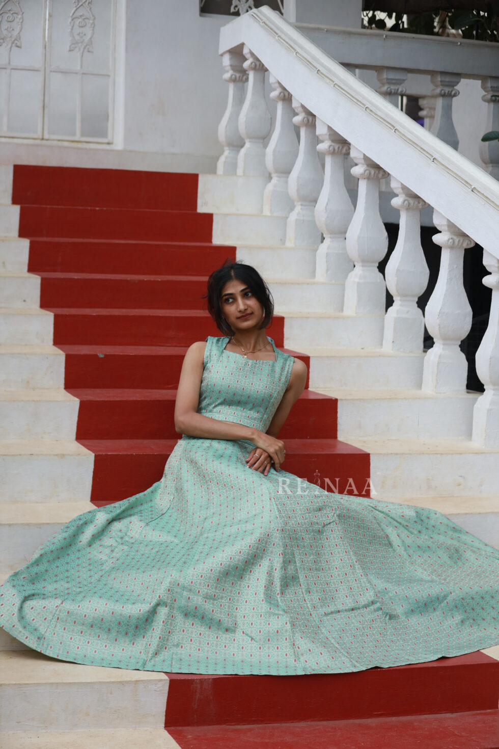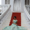 Designed with a beautifully structured kali (paneled) cut, the skirt offers stunning flare and graceful volume that moves like poetry with every step.