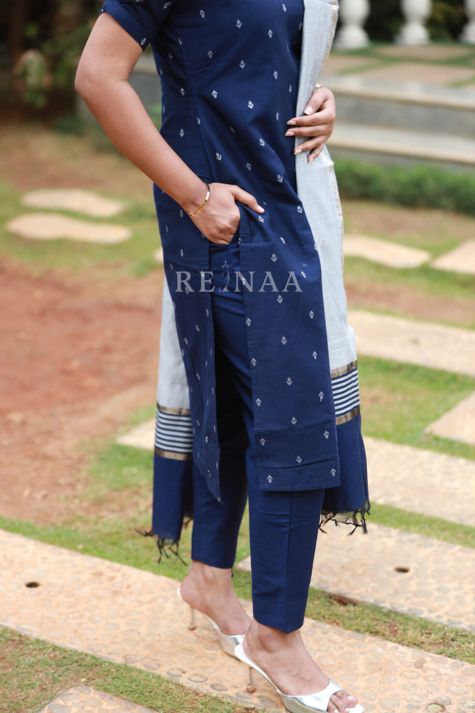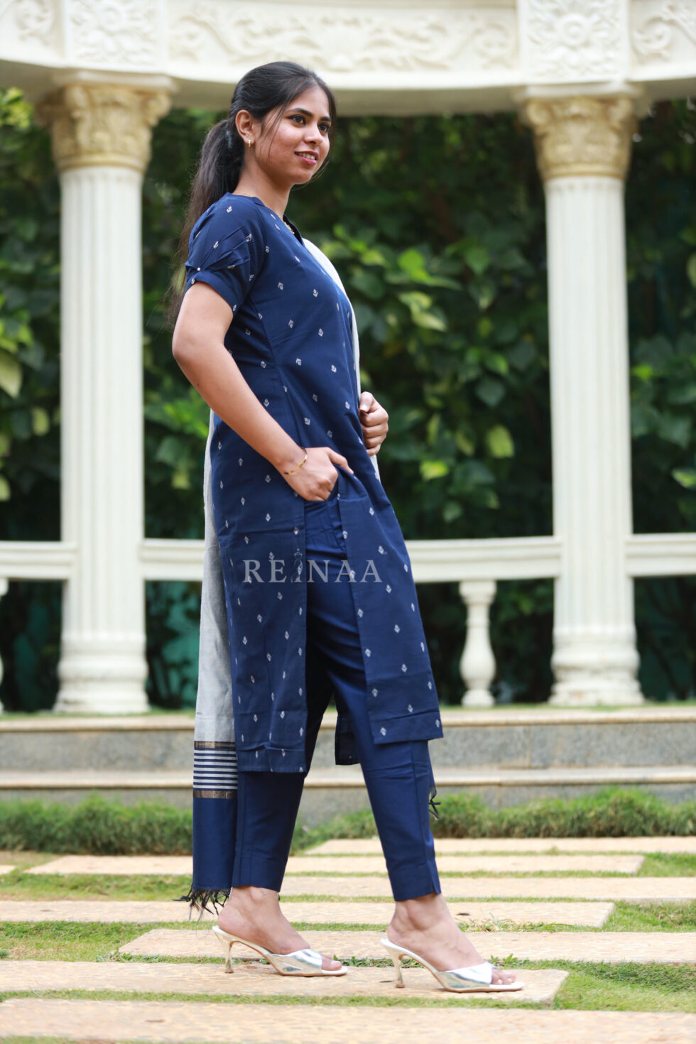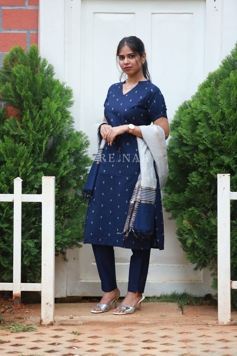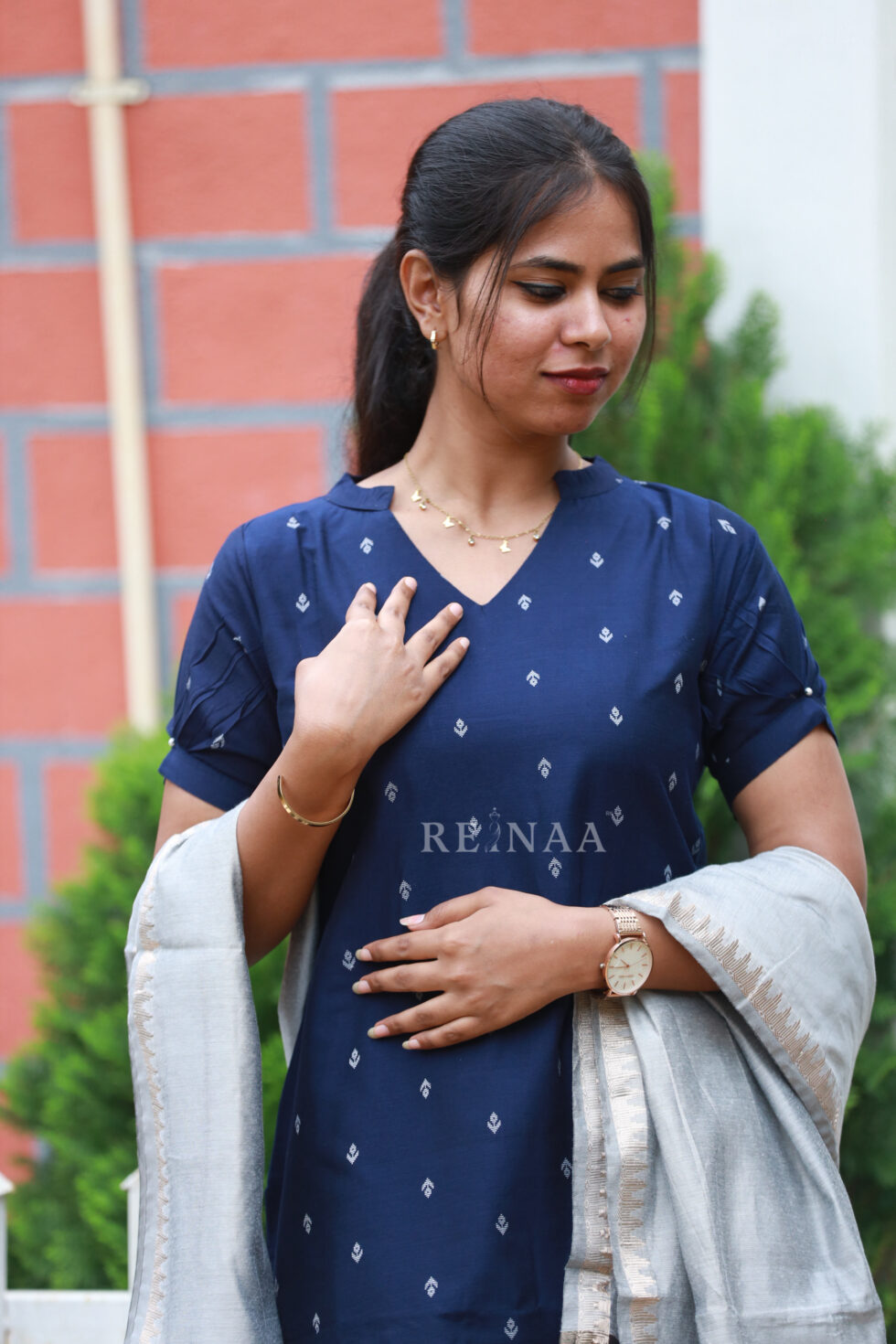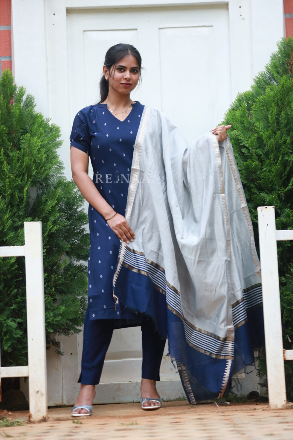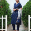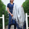 Blue Kurta Set with Grey dupatta